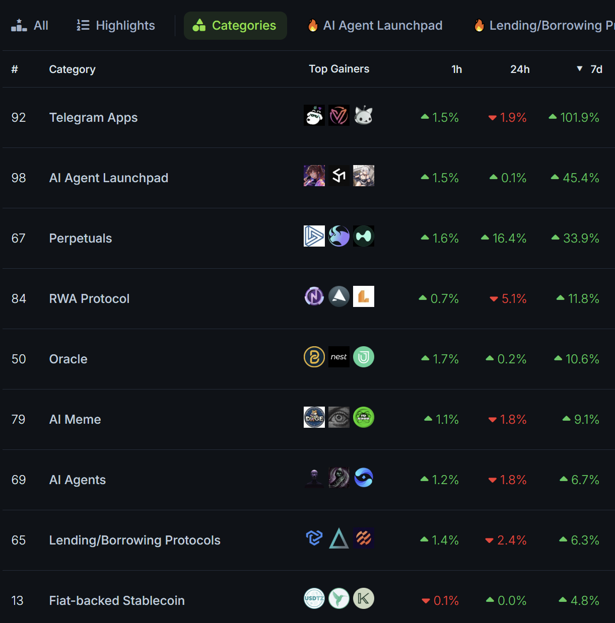 现在除了最近爆红的 AI Agent 赛道持续成长,其他板块包含 Meme、DeFi、RWA、L1/2 在币价上也展现出强劲的上涨力道,整体山寨币种似乎迎来光明的未来。