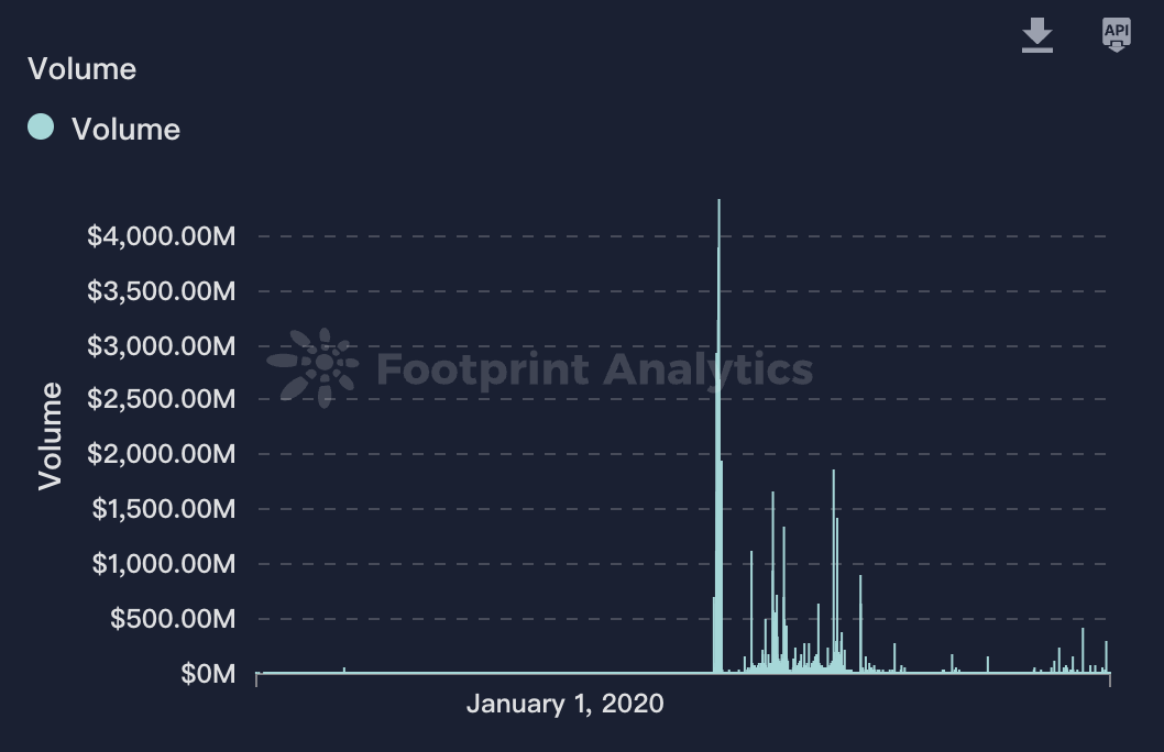 当时NBA Top Shot 以NFT 的方式推出,让玩家可以收藏NBA 球星在球场上的精采时刻,当中吸引了许多加密爱好者和球迷的积极参与,其中著名球星勒布朗·詹姆斯在2020 年总决赛的一记扣篮,成交额高达23 万美元。