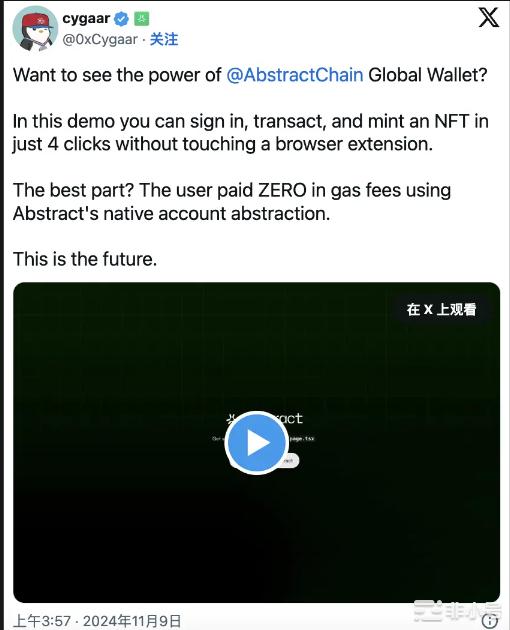 Abstract 团队的一个例子是,用户只需四次点击即可登录并创建 NFT,这比当今大多数链上场景所需的次数要少得多。