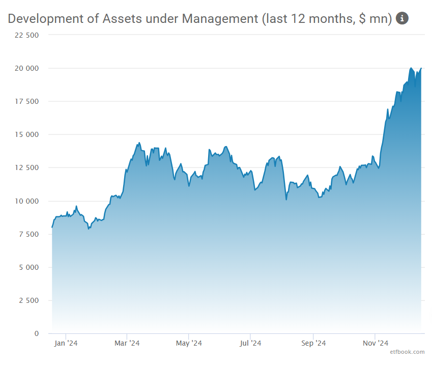 而在全球范围内,尤其是欧洲,加密货币 ETP 的数量和管理资产规模都在快速增长。截至今日,欧洲市场共有 222 个加密货币 ETP,管理资产 AUM 达到 200 亿美元,在过去一个月内增长了近 60%。这些产品为散户和机构投资者提供了一种便捷、受监管且低成本的方式来获取一系列基础投资,包括但不限于比特币、以太坊以及其他主流加密货币。此外,随着更多传统金融机构(如贝莱德)加入到加密货币原生公司的发行行列中,ETP 不仅扩大了投资者访问加密货币投资的机会,也推动了加密货币在全球金融市场中的整体接受度。