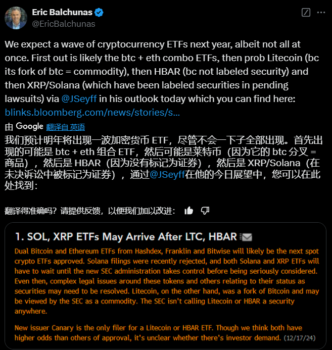 在推出该 ETP 之前,Bitwise 于今年 11 月在美国特拉华州注册了 Solana 相关法定信托,希望为美国投资者提供未来潜在的 Solana ETF 服务。今年随着比特币和以太坊的现货 ETF 获得通过,Solana 的 ETF 预期也正在提升。但对于美国投资者而言,受到现有证券法的掣肘和 SEC 对 Solana 证券定性的合规进展影响,导致 Solana ETF 在美发行仍无确切日期,且投资者也无法在这些产品中访问质押收益。而在美国 ETF 上市预测中,彭博社分析师 Eric Balchunas 将 Solana 和 XRP 等被 SEC 重点关照的代币放在 ETF 决断的最后优先级,在这样的前提下,各大加密托管商正在转向欧洲市场,并通过链上质押服务为投资者提供超额收益,同时赋予投资者更大的自由度。