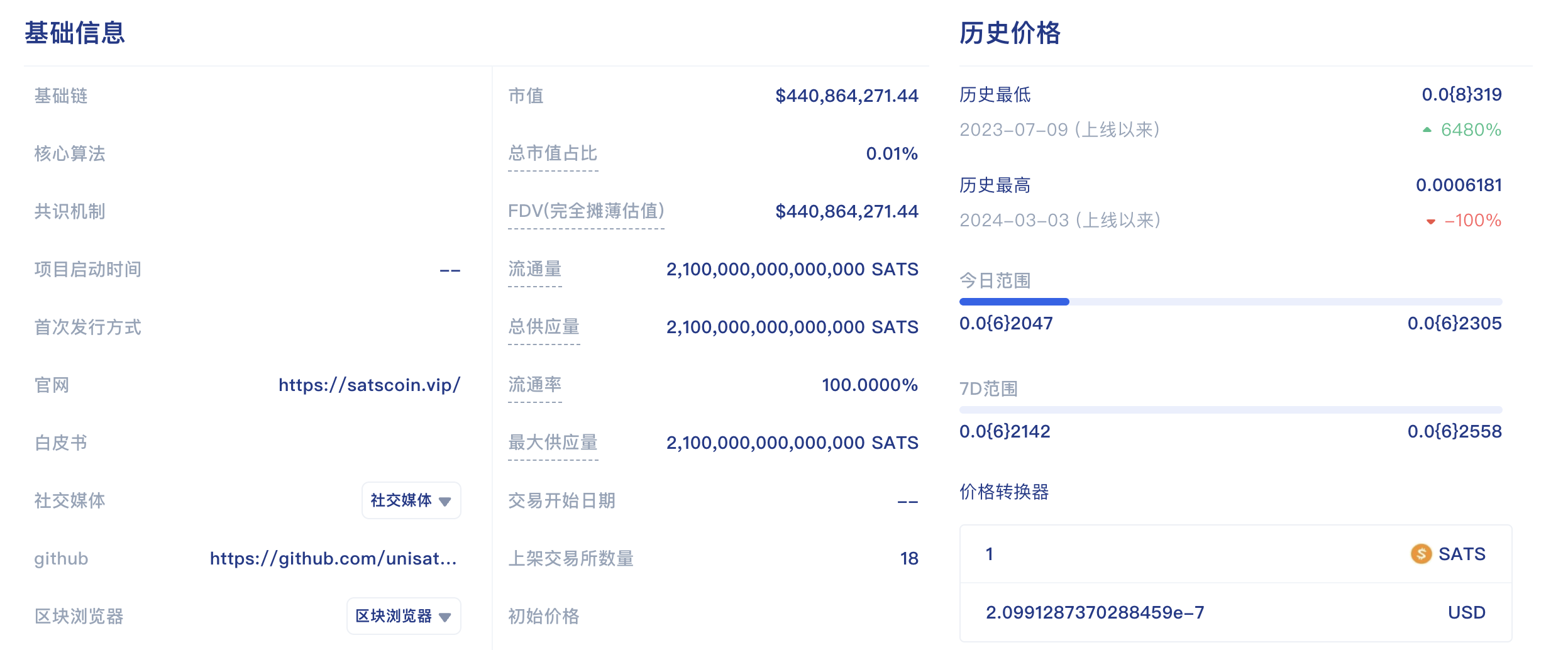 截止撰稿时间:SATS价格0.0000002101$ 。历史最低价:0.00000000319$ 历史最高价:0.0006181$
