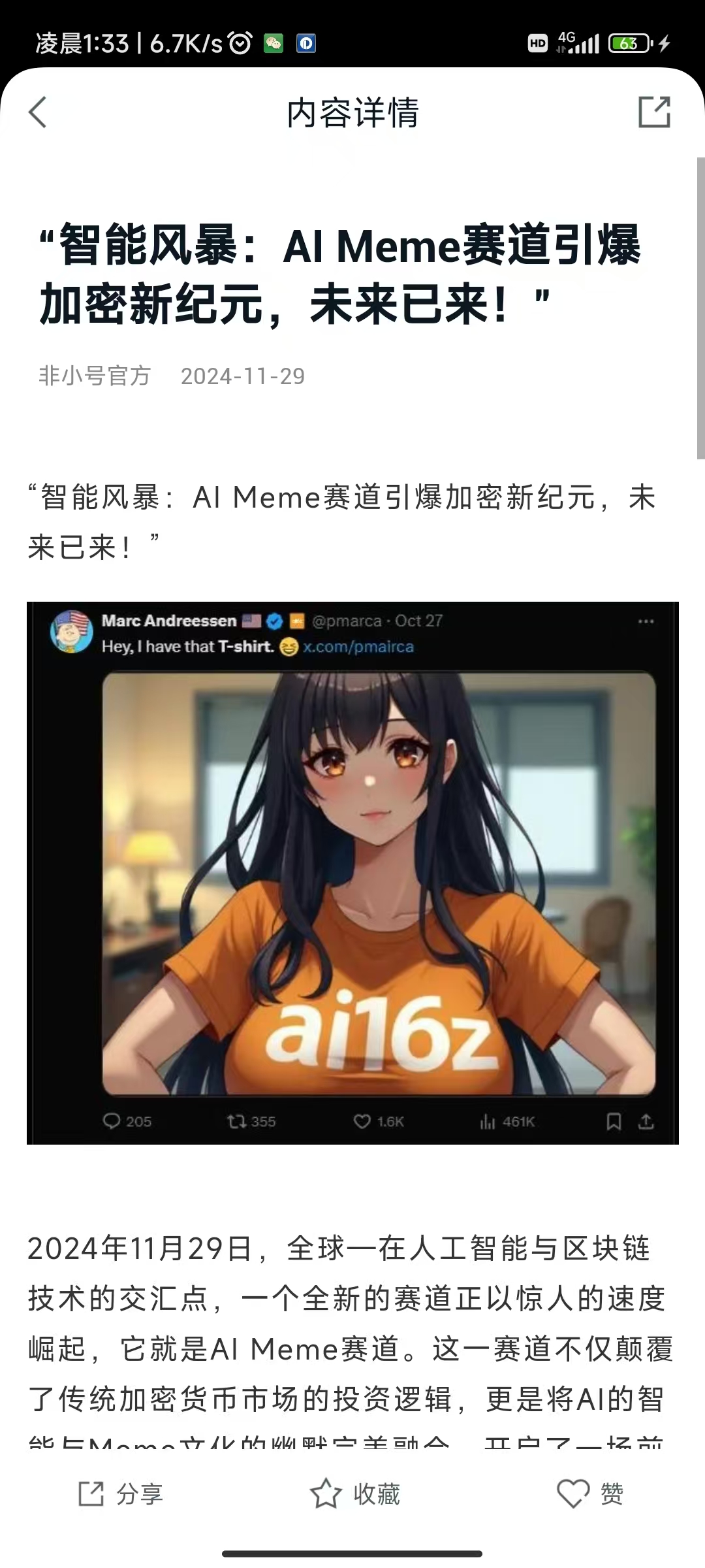 非小号投研分析师宠笨笨的笨笨之所以能够在BN阿尔法计划中提前压住KOMA与ai16z,得益于其对市场的深刻理解和对信息的敏锐捕捉。在加密货币市场,信息的不对称性往往意味着机遇的不平等。作者通过专业的投研能力,打破了这种不对称,为投资者提供了平等的竞争机会。AI板块一直是作者特别看好的赛道之一。“智能风暴:AI Meme赛道引爆加密新纪元,未来已来!” https://m.fxhnews.com/news/11941111.html