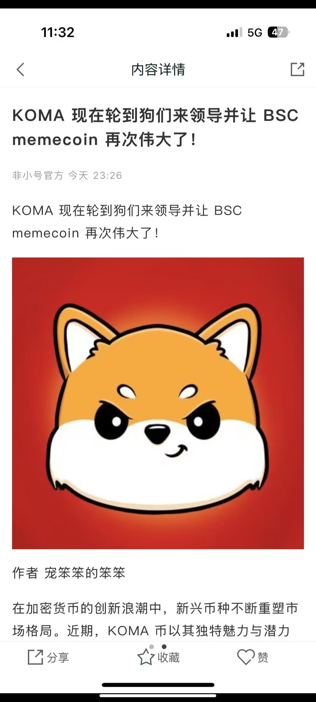 KOMA,全称Koma Inu,是一个以狗为主题的Meme币,旨在成为“BNB的忠实守护者”。KOMA以其社区驱动和去中心化的理念,为BNB Chain生态注入新的活力。KOMA的单价为0.156997美元,流通量为7.31亿枚,总供应量与流通量相等,最大供应量为10亿枚,流通市值约为1.15亿美元。