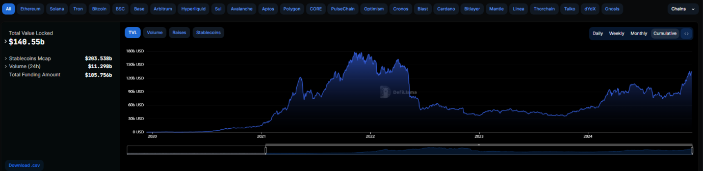 经过两年的调整后,总锁仓价值(TVL)等关键指标开始回升。DeFi 平台的交易量也大幅提升。