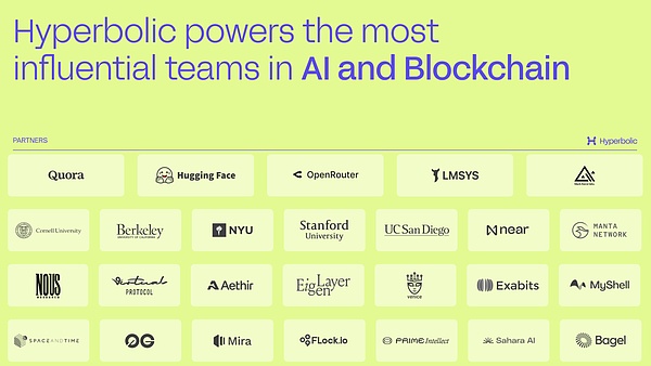 Hyperbolic 赢得了 Hugging Face、Quora、Black Forest Labs 和 Nous Research 等领先人工智能公司的信任,也受到了斯坦福大学、纽约大学、加州大学伯克利分校等顶尖高校的支持。
