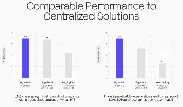 尽管Web2开发者常担心去中心化方案可能影响性能和可靠性,Hyperbolic却在大语言模型和图像生成领域展现了卓越的表现。