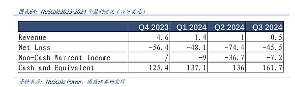营收:公司营业收入为50万美元,去年同期公司营收700万美元,营收减少主要是与CFPP合约终止导致(2023 年11月8日,UAMPS和NuScale宣布双方同意终止无碳电力项目CFPP);
