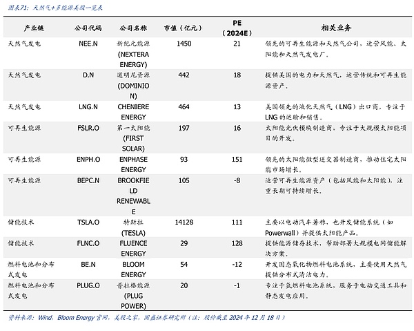 除了SMR核电,还有多种方法来应对能源挑战,包括天然气发电、可再生能源(如太阳能、风能)、储能系统,以及利用燃料电池等创新技术,通常采用天然气 其他能源的复合方案,因此我们梳理了各个环节主要参与者: