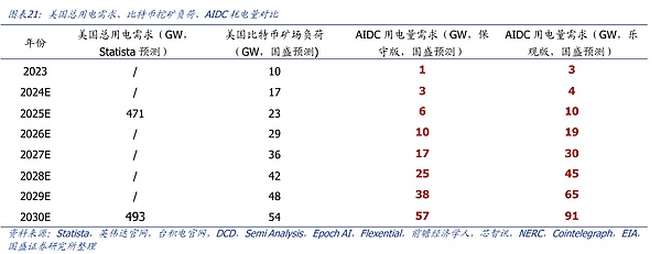 结论:保守预测下,美国 AIDC 耗电量将在 2030 年赶超比特币挖矿电力需求;乐观预测下,美国 AIDC 电力需求将在 2029 年超过比特币挖矿。