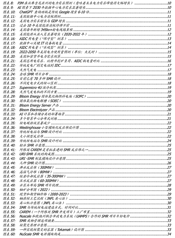 解决方案:短期 - 天然气,中期 -SMR 核电,远期 - 可控核聚变。AI 的崛起正在将资源竞争引向算力 能源。在 AI 驱动的数字世界中,算力是迭代和创新的基础,而能源则是支撑这些算力运转的关键。短期内,天然气结合燃料电池为数据中心提供灵活且高效的发电方案,满足当前快速扩张的需求。中期来看,小型模块化反应堆(SMR)因其稳定性和适应分布式部署的特性,成为应对数据中心功率瓶颈的关键路径。远期而言,可控核聚变有望彻底突破能源供给限制,为未来的算力生态提供无限、清洁的动力支持。在这一进程中,从能源技术的持续创新到算力生态的高效协同,不仅推动了 AI 技术的飞跃,也重塑了能源与计算深度融合的未来格局。