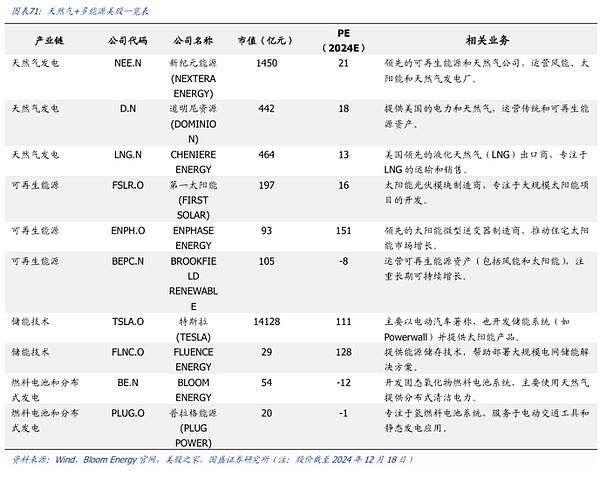 燃料电池和分布式发电(燃料电池以天然气或氢气为燃料):Bloom Energy Corporation (NYSE: BE)、Plug Power (NASDAQ: PLUG)等。