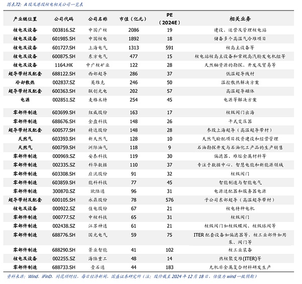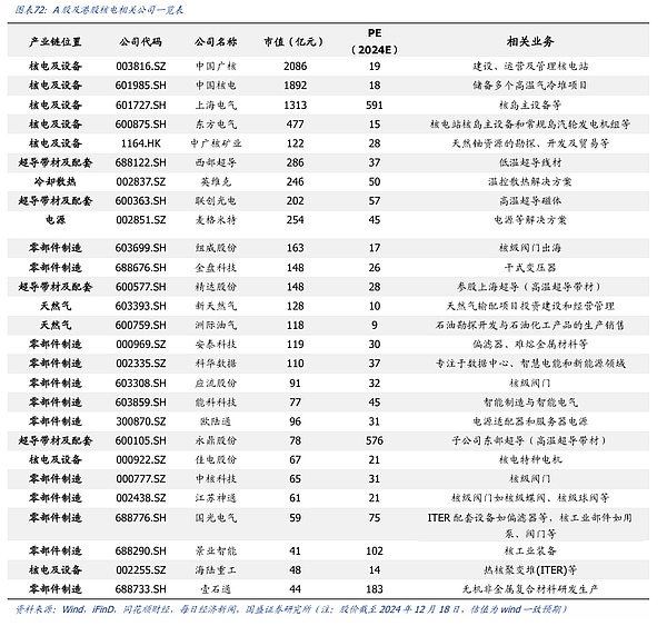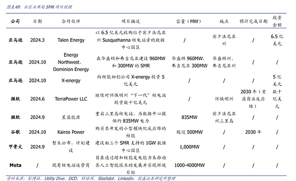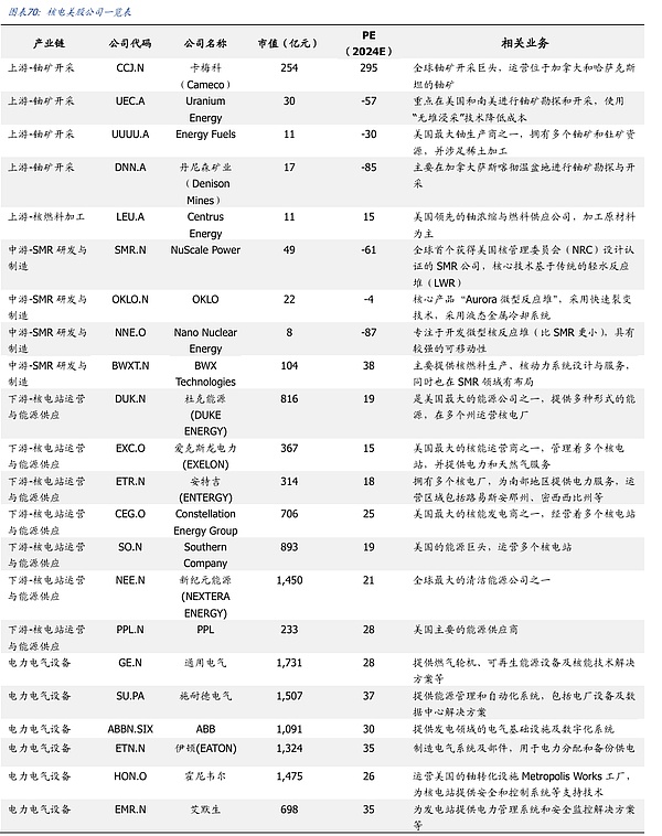 SMR核电单一方案即可满足供电需求,因此我们梳理了产业链上中下游参与者: