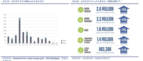 缺基建:根据美国的电力投资趋势,从 2016 年到 2023 年,美国公用事业的资本开支显著增加,尤其是发电、配电和输电领域,电网投资从 2018 年开始提速,主要由于制造业回流对电力需求的推动,在这种背景下,美国依旧没有大规模扩建电网,根据 Grid Strategy 出具的调查报告,2010-2014 年美国平均每年安装 1700 英里的新高压输电里程,但在 2015-2019 年下降到每年仅 645 英里。