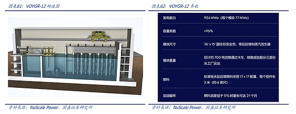 核心产品:公司核心产品SMR电源模块。NuScale电源模块是最小的轻水SMR,高76英尺,直径15英尺,单模块可产生77 MW电力。模块(包括密封装置)完全在工厂制造,并通过卡车、铁路或驳船运送到工厂现场,无需现场制造或施工,降低了与现场施工相关的进度和成本风险。
