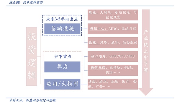 AI产业加速发展下,GPU、CPU到存储、通信、铜缆等各细分领域,已经成为当前市场热议的主题,但这些算力生态的背后,强烈依赖于能源和基础设施的持续供给。从下游AI应用场景(无论是游戏、金融、还是医疗等)到上游基础配套(囊括散热、IDC、能源等),每一个环节都环环相扣,然而,目前市场在算力竞争白热化的背景下,更多聚焦于中下游环节(硬件和应用),而忽略了基础设施对算力长期可持续发展的关键作用,当下电力及IT基础设施已成为北美算力市场的瓶颈。算力软硬件毫无疑问已成为市场热点,展望未来3-5年,挖掘更多算力相关的机会,更需要提前研究上游基础设施环节,尤其是能源环节。