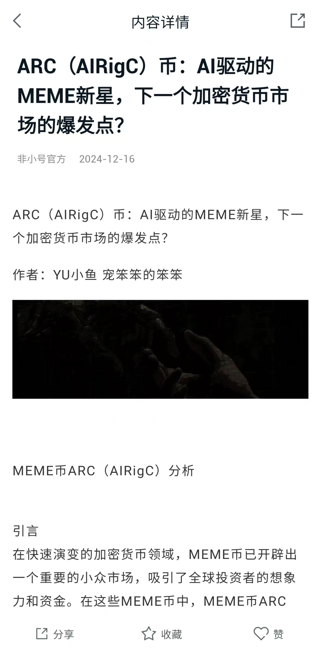 ARC:不仅仅是一枚普通的MEME币。它围绕开发先进的AI代理而构建,利用MEME币文化为AI基础设施提供资金和推广。ARC背后的团队正在开发RIG,这是一个用Rust编写的开源框架,用于构建模块化、轻量级的AI代理。该项目旨在实现一场计算革命,让AI能够更好地理解上下文,从而提供一个超越传统MEME币投机性质的实用案例。