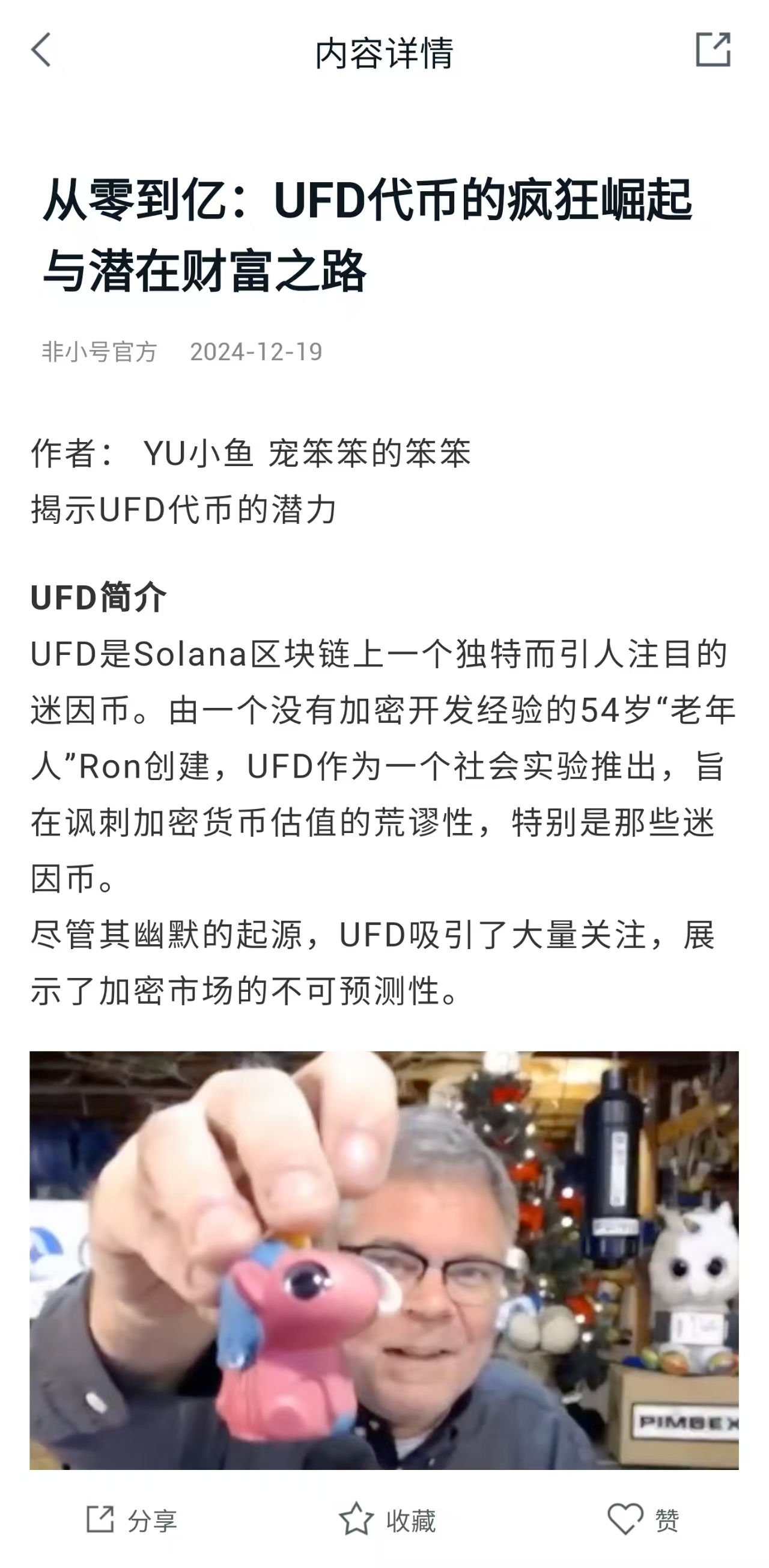 UFD:是Solana区块链上一个独特而引人注目的迷因币。由一个没有加密开发经验的54岁“老年人”Ron创建,UFD作为一个社会实验推出,旨在讽刺加密货币估值的荒谬性,特别是那些迷因币。