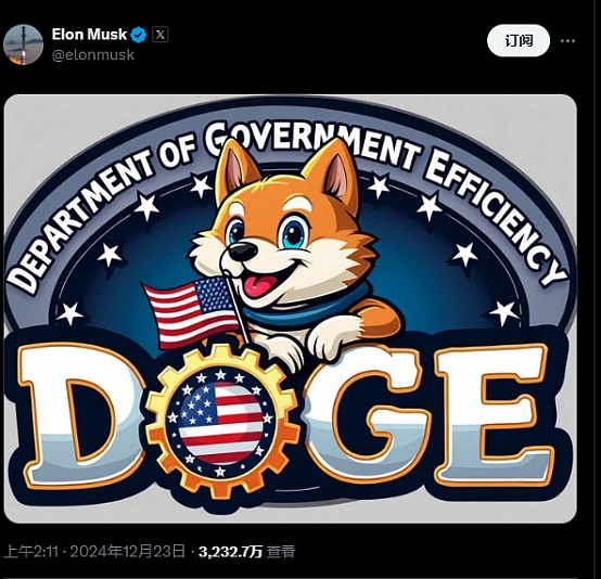 而在法案事件结束后,马斯克也表现雀跃,再度发布政府效率部LOGO,顺便让DOGE也深藏了一波功与名。从目前来看,效果虽然不如以往明显,但币价还是有所回升,在12月20日跌至0.26美元后,DOGE回暖至0.35美元,现在0.31美元震荡。