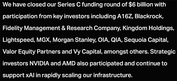 智东西12月24日报道,今日,xAI宣布已完成60亿美元(约合人民币438亿元)C轮融资,投资方包括A16Z、Blackrock等。战略投资者英伟达和AMD也参与其中,并继续支持xAI快速扩展基础设施。