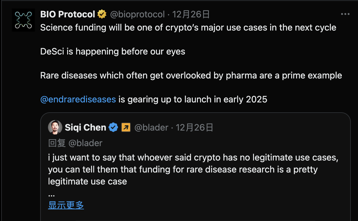 去中心化科学(DeSci)赛道的知名项目 BIO Protocol 也评论称,MIRA 的成功是 DeSci 影响力的美丽体现。