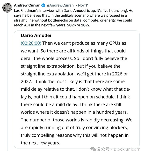 这是我第一次觉得我们真的知道该做什么。从现在到构建一个 AGI 仍然需要大量的工作。我们知道有一些已知的未知数,但我认为我们基本上知道该做什么,这将需要一段时间;这会很困难,但这也非常令人兴奋。
