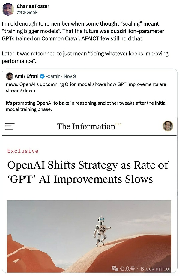 我曾撰写过一篇文章关于资本市场如何成为叙事驱动的信息茧房,而激励机制往往会使这些叙事得以延续。扩展定律的共识给人一种不祥的相似感——一种根深蒂固的信仰体系,它在数学上优雅且在协调大规模资本部署上极其有用。就像许多宗教框架一样,它可能作为一种协调机制比作为一种基本真理更有价值。