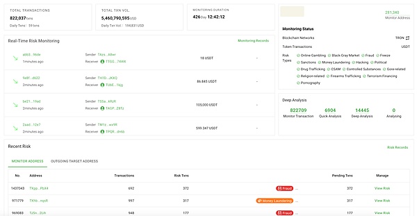 2023 年我们推出了包括 DeTrust 链上风险资金监测管理平台、BitracePro 加密货币多方协作分析平台、地址资金风险审计、业务地址监测等在内的监管科技工具及服务,今年则在此基础上拓展了数据范围与工具、服务能力——