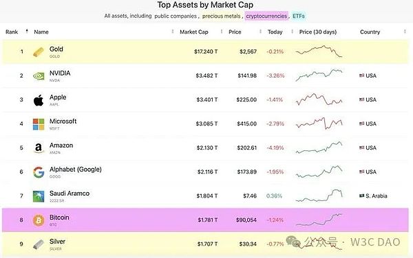 截止11月18日,比特币已经来到了90000美金,总市值超过17800亿美金,超过了白银排到了全球市值的no.8,距离黄金市值还有10倍的距离。假设黄金市值不变,比特币50万刀,就将是黄金市值的50%,但是,越接近黄金的市值,其数字黄金的叙事反而会变成其瓶颈。