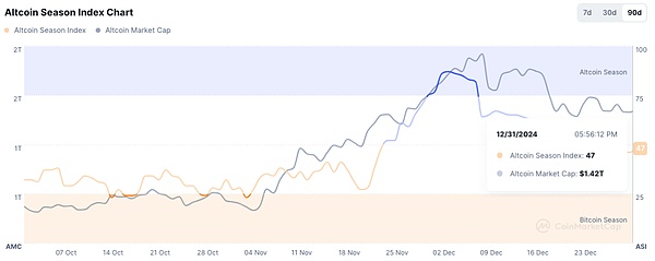 当前Altcoin Season Index为47,前值为46;