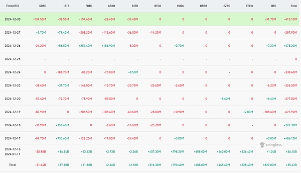 其中贝莱德iShares比特币信托(IBIT):在12月19日,IBIT经历了创纪录的单日净流出,金额达1.887亿美元;