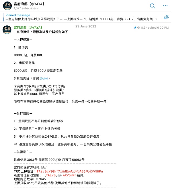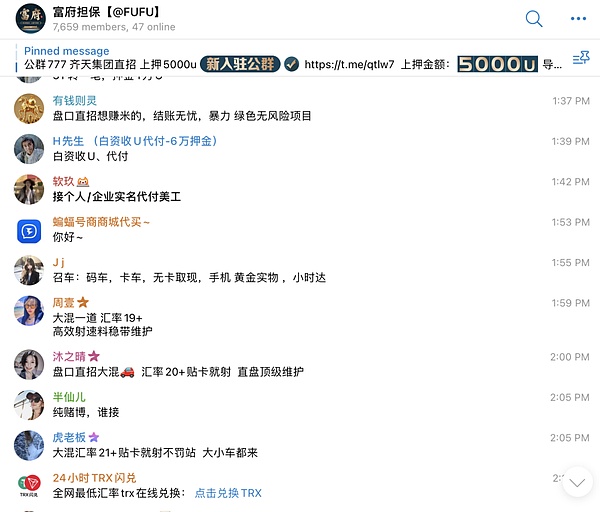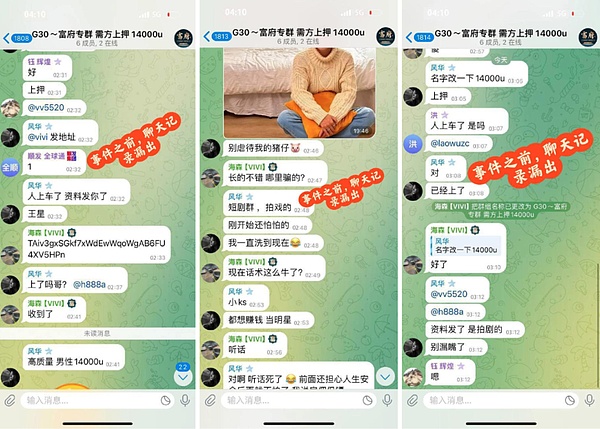 近日,演员王星被骗至缅甸的事件在网络上引发广泛关注,公众对案件背后的细节充满好奇。慢雾安全团队注意到,一份聊天记录截图在社交媒体上广泛流传,截图中的群名为“富府专群 需方上押 14000u”,截图中提到,王星已上车,而所谓的担保费用为 14,000 USDT,并附有一个用于收取担保费用的加密货币地址:TAiv3gxSGkf7xWdEwWqoWgAB6FU4XV5HPn。事情的真相是不是真如图那样呢?