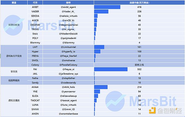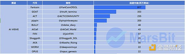 AI Agent Meme 币源于 AI Agents 的诞生,将人工智能与社交文化相融合,推动了虚拟形象、内容创作等新型社交体验的兴起。这类项目主要涉及 AI 生成的内容、互动娱乐以及数字化表达方式。