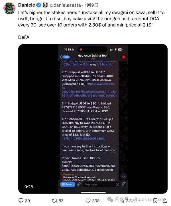 3. 自动化 DeFi 活动(如交易自动化)的 AI 代理