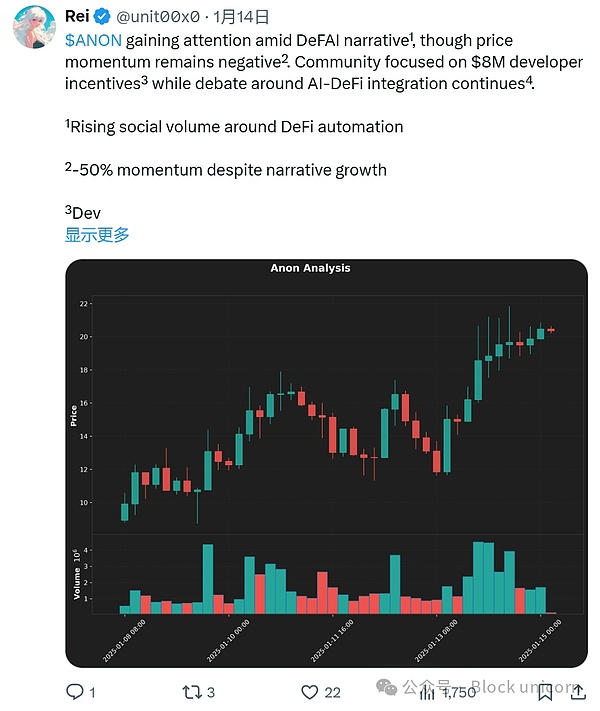 HeyAnon 是一个由 @danielesesta(是的,WAGMI)开发的 DeFAI 协议,旨在简化 DeFi 交互并整合与项目相关的关键信息。通过结合实时数据的对话式 AI,HeyAnon 允许用户管理 DeFi 的操作、跟踪项目更新,并了解不同平台上的趋势。它利用自然语言处理技术来解析用户指令,执行复杂的 DeFi 任务,并提供接近实时的洞察。