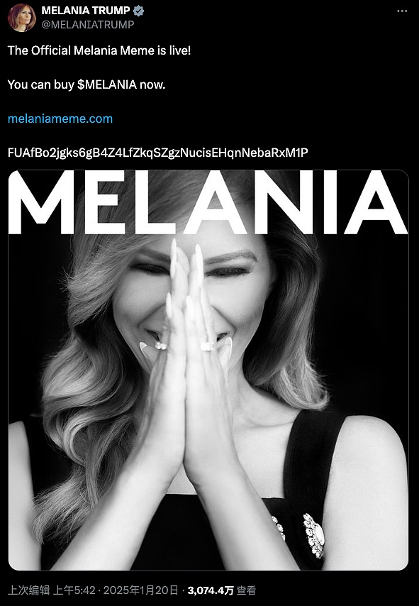 1月19日,特朗普的妻子梅拉尼亚宣布发行「MELANIA」代币之后,市场的质疑声更加强烈。