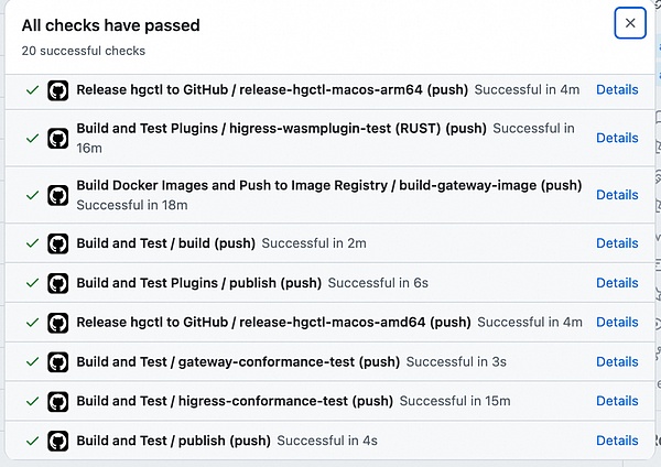 此外,每次新版本发布,不依赖人,而是由程序自动完成也很重要。Higress 社区在每次版本 release 发布后,会通过 GitHub Action 自动制作容器镜像以及安装包,镜像仓库密钥基于 GitHub Secret 存储。发布版本的权限可以给到社区里其他合作者,但无需提供给合作者镜像仓库的密码。