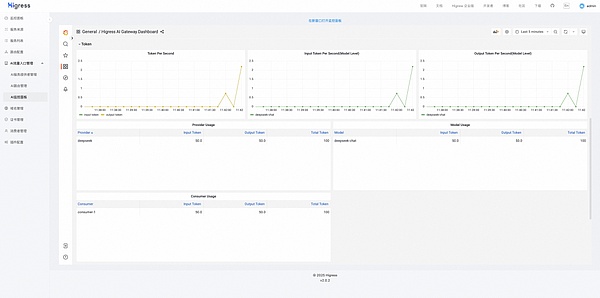 print(chunk.choices[0].delta)可以在监控面板看到每个模型,以及每个消费者的 token 消耗情况以及调用延时: