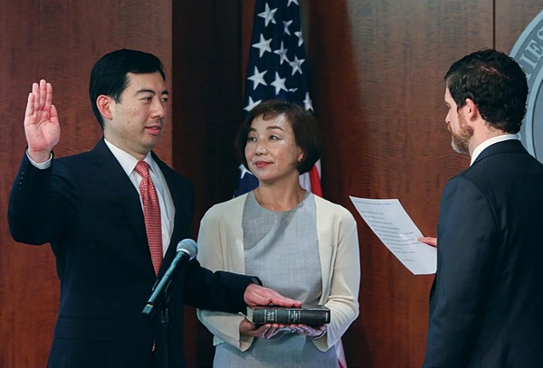 Mark Uyeda(左一)宣誓上任成为 SEC 代理主席,来源:YouTube