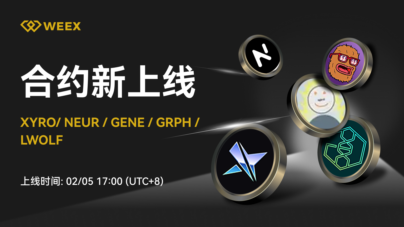 WEEX合约将于2025年2月5日17:00 [UTC 8]上线XYRO、NEUR、GENE、GRPH、LWOLF U本位合约。