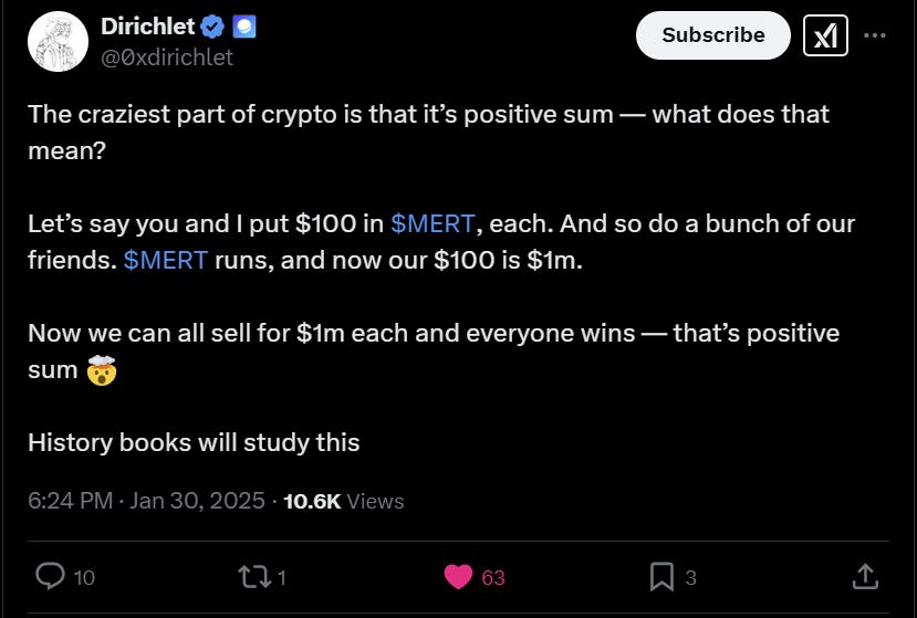 此外,某些特定资产也可能因资金轮动而受益。例如,一些投资者从不投资 Meme,但可能开始关注“AI Meme”,因为这些投资更容易被合理化。