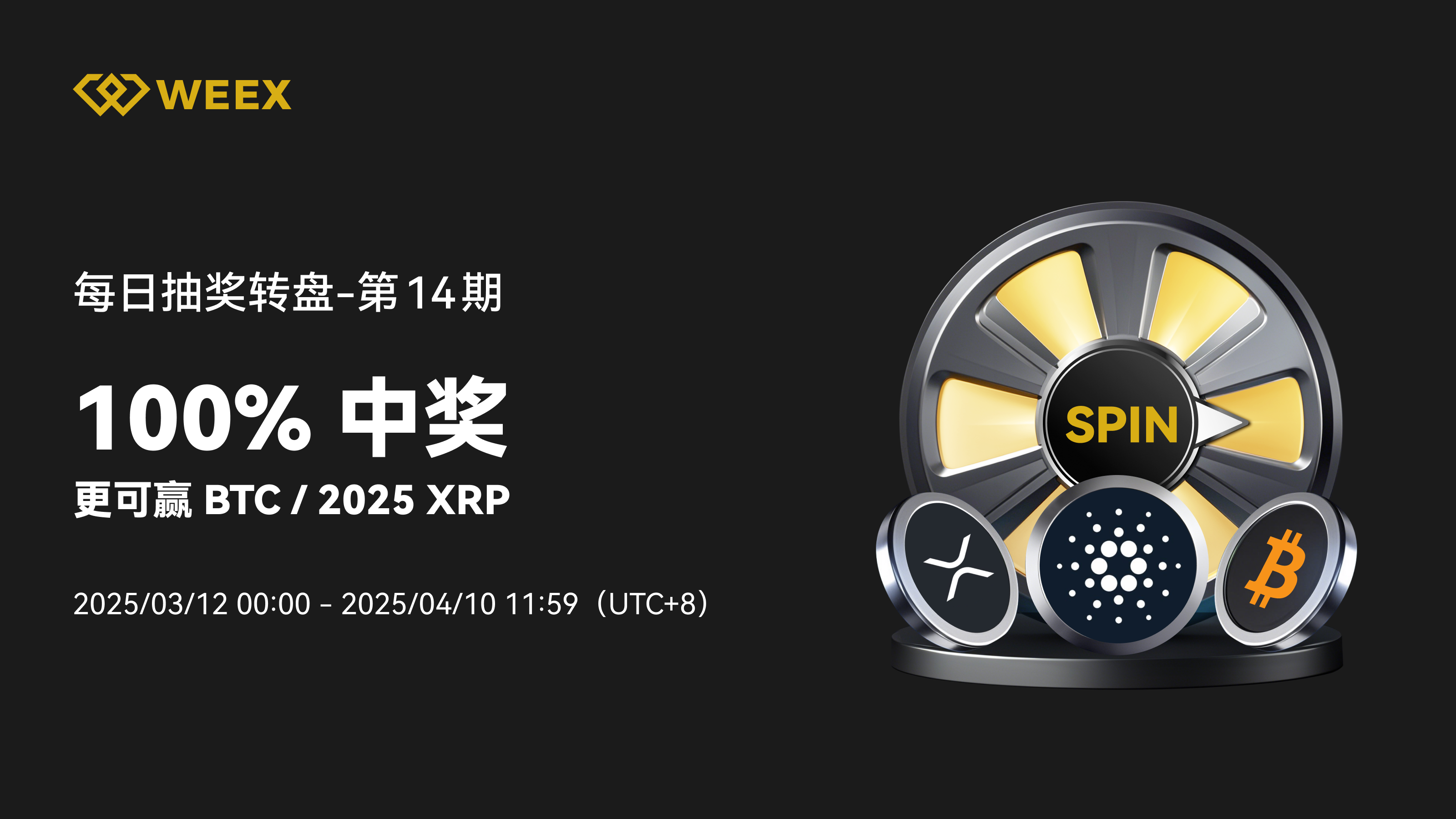 WEEX每日抽奖转盘第13期火热来袭,参与即可【100%中奖】!完成每日任务及累计任务,可获得 BTC,WXT,XRT,USDT,ADA等,众多超值奖励等您来拿!