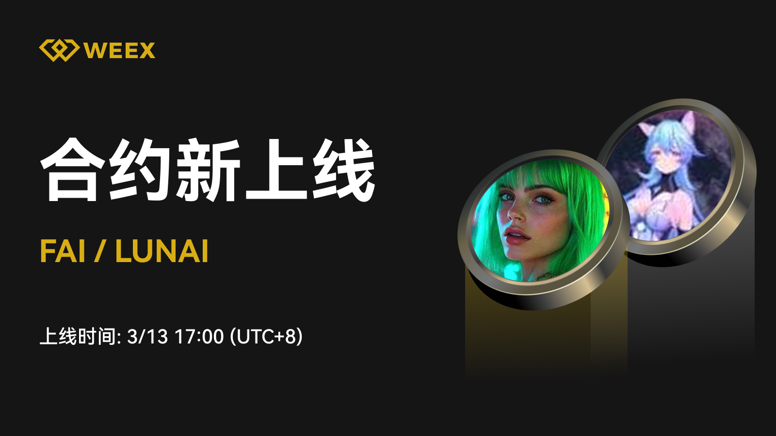 WEEX合约将于2025年3月13日17:00 [UTC 8]上线FAI、LUNAI U本位合约。