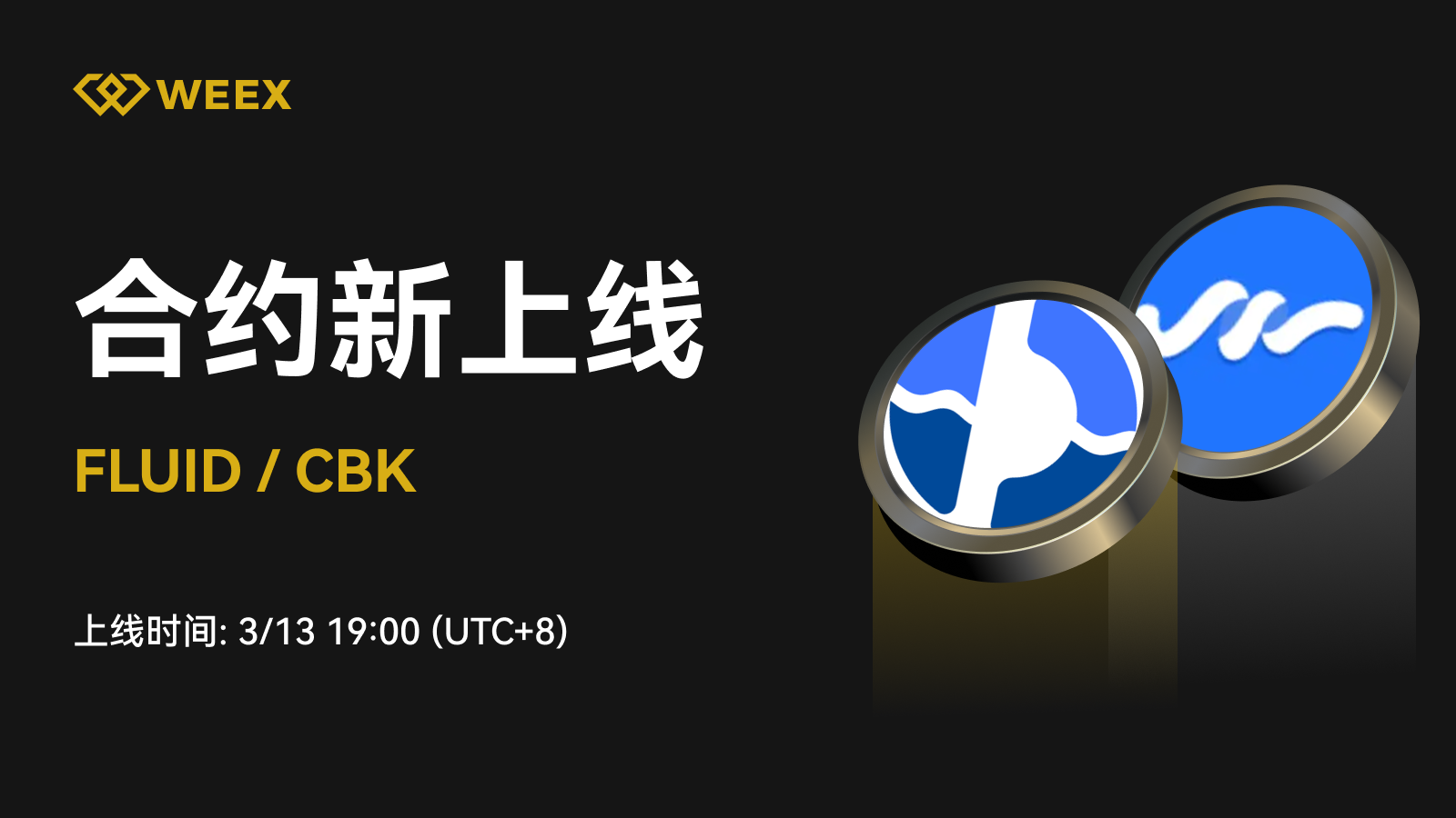 WEEX合约将于2025年3月13日19:00 [UTC 8]上线FLUID、CBK U本位合约。