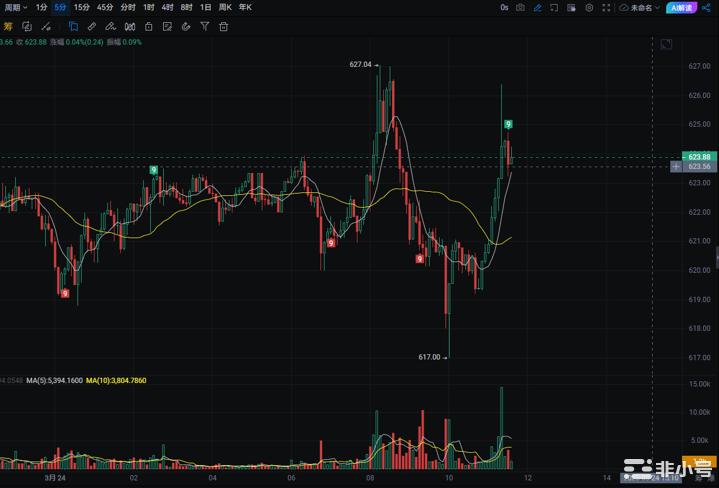 均线系统黏成一团,5日线(623.2)和10日线(622.6)几乎贴着现价,短期方向完全看不清。成交量缩到今年最低,庄家控盘痕迹明显,估计就等个消息来打破僵局。