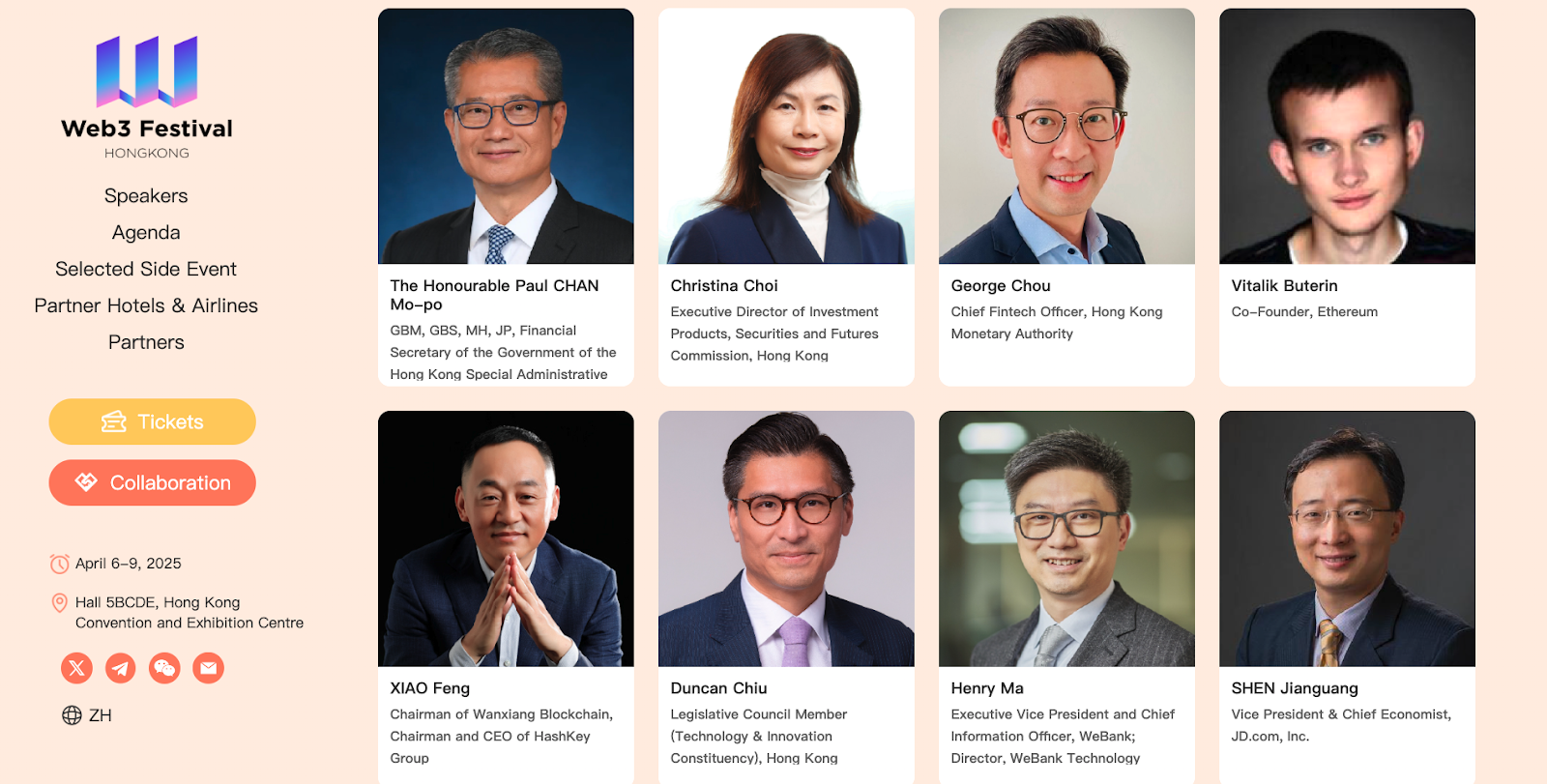 - - 亚洲顶级 Web3 盛会:2025 年香港 Web3 Festival 将于 4 月 6 日至 9 日在香港会议展览中心(HKCEC)举行,预计将有超 400 位嘉宾、200 家展商和超过 5 万名参会者,成为亚洲规模最大的区块链盛典。