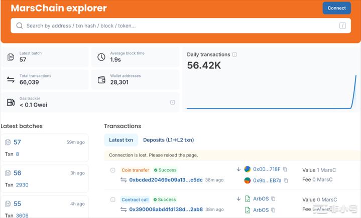 MarsChain 主网上线后便展现出强大活力。从 MarsChain 浏览器数据可知,截至目前: