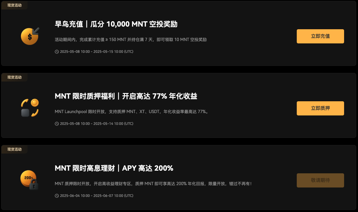 优惠:MNT持仓限时年化收益率提升——适合在嘉年华结束前锁定额外收益。