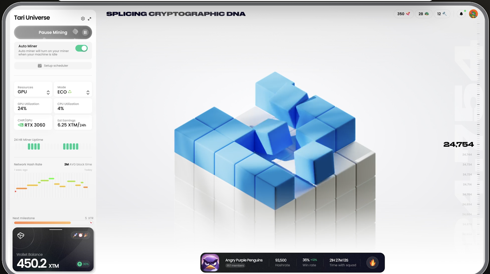 挖矿与钱包:一款集成在 Windows/macOS 上的全能应用,可同时挖矿 Minotari (XTM) 并管理 XTM/XTR 钱包。界面游戏化,展示挖矿进度和“部落”排行榜,新手几分钟即可上手 CPU/GPU 挖矿。