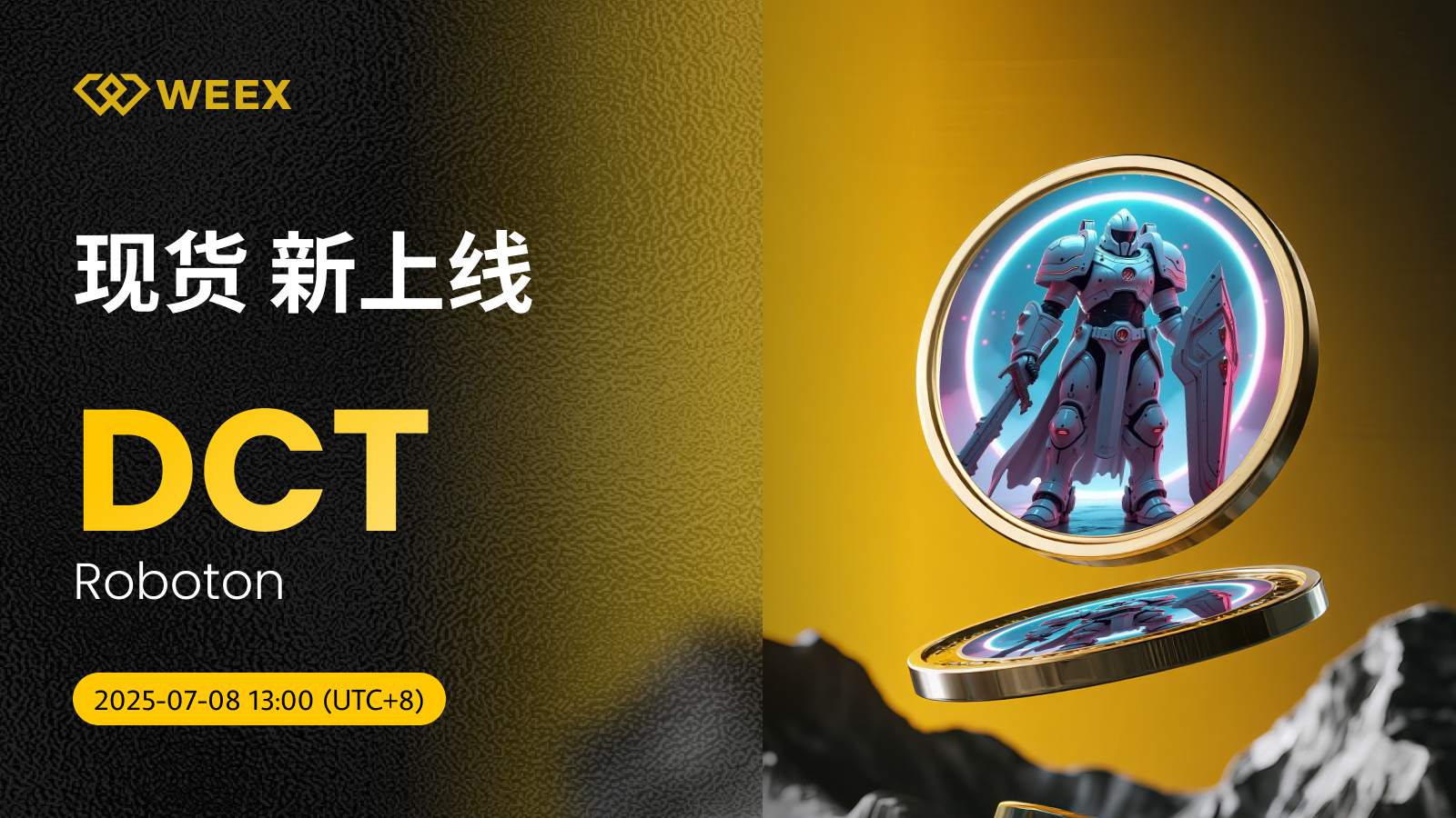 我们很高兴地宣布 Roboton (DCT) 现已正式登陆WEEX现货交易区!即日起,您可在WEEX平台进行 DCT/USDT交易,详情如下: